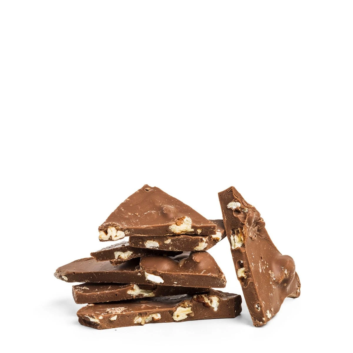 New for 2023, Ecuadorian Milk Chocolate shards studded with caramelised pecans.