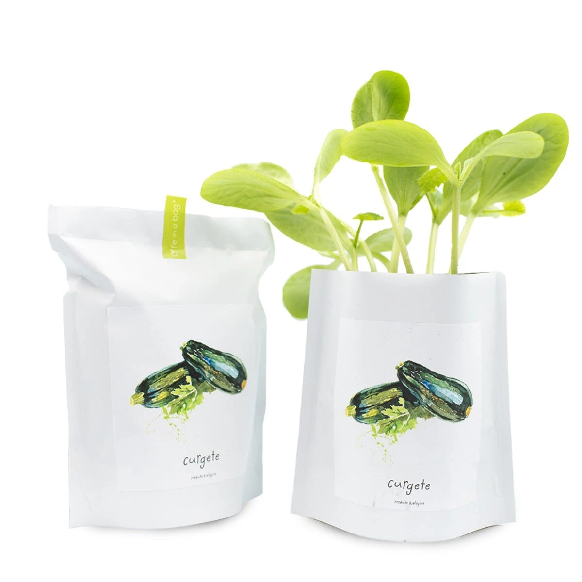 Grow fresh courgettes on your kitchen windowsill all year round. Kit includes a leakproof bag, a package of organic seeds, soil, clay and instructions.