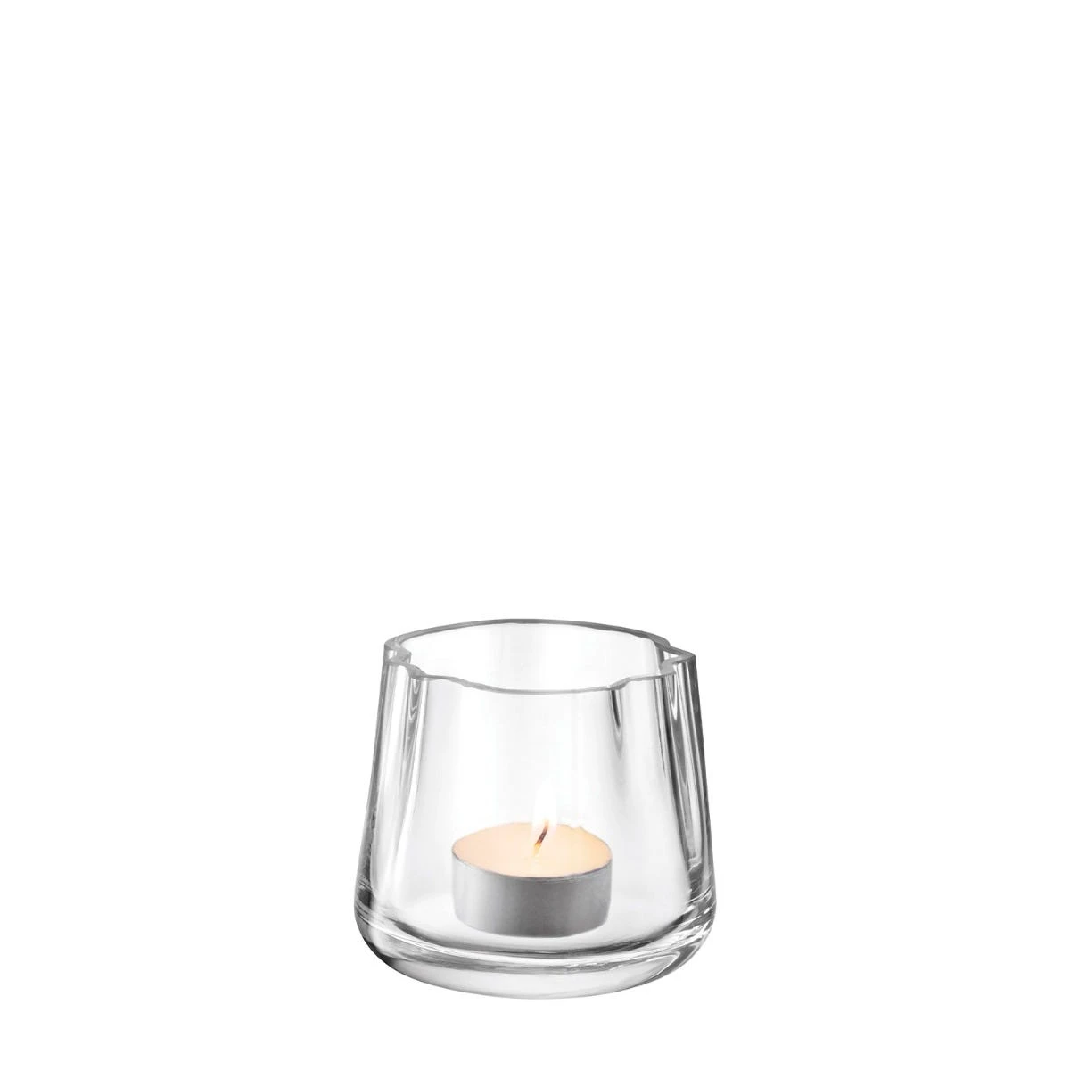 A mouth-blown glass candle holder with undulating folds, suitable for displaying tealights or using as a small vase.
