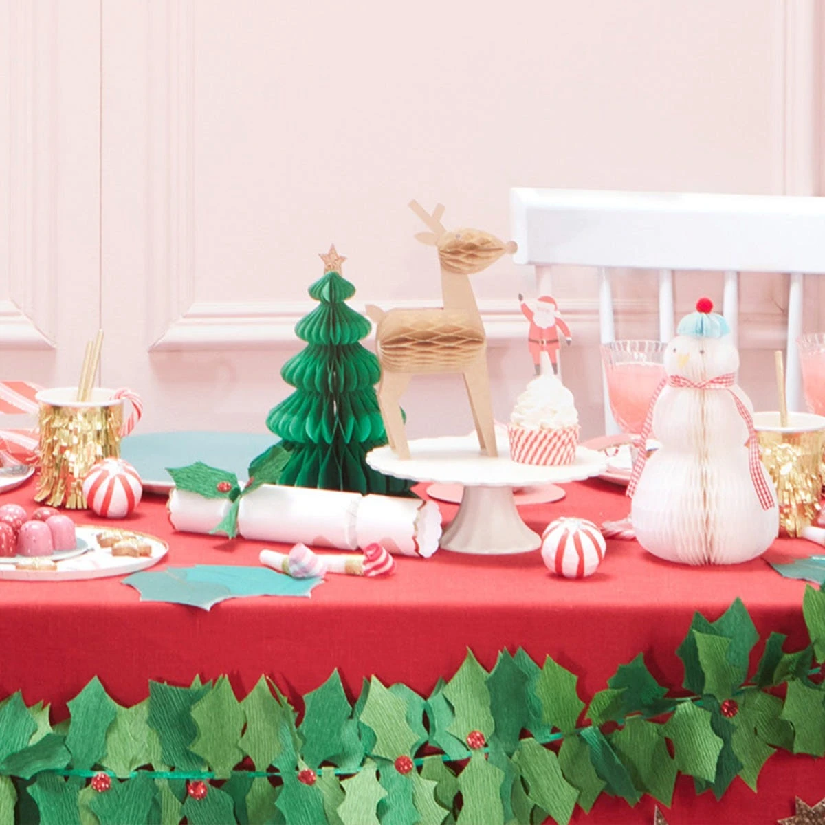 Decorate your home with these festive honeycomb characters. The set includes 4 honeycomb Christmas trees, 4 reindeer, 1 Santa and 1 snowman.