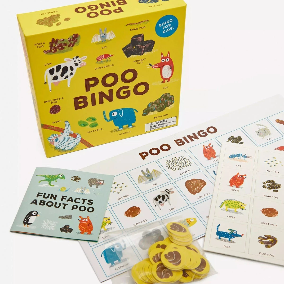 Featuring 24 animals and their uniquely shaped poos, this bingo game will delight children and adults alike.